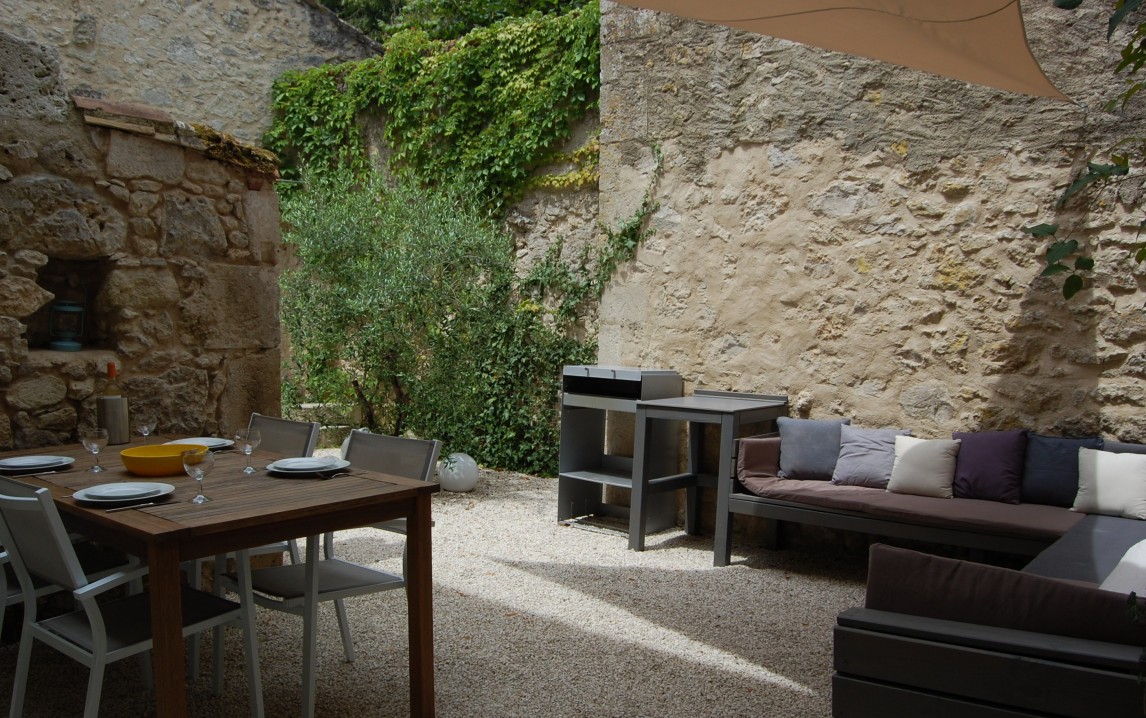 Im von mittelalterlichen Mauern umgebenen Hof, die "cour", genießen Sie in absolute Privatsphäre die Südfranzösische Sonne und der Schatten. Der Aufstell Pool bietet eine erfrischende Abkühlung. Ruhen Sie sich aus in der Lounge, grillen Sie eine herrliche Mahlzeit, oder trinken Sie ein hervorragendes Glas Wein aus der Gegend. Abends genießen Sie die gemütliche Beleuchtung und die Sterne.