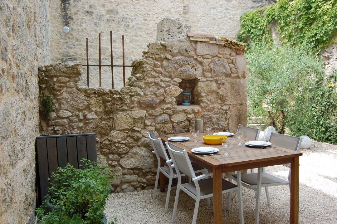 In the courtyard surrounded by medieval walls, the "cour", you will enjoy the southern French sun and shade in complete privacy. You will also find a refreshing above ground pool and you can relax in the lounge area, barbecue, or drink a delicious glass of local wine. In the evening you will enjoy the beautiful lights and the stars. If you prefer watching the typical French village life you can also sit down under your own arcades at the front of the house.